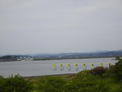 長沼にはボート競技場があり、1から8までコース番号を示す表示が湖面に見えるのが特徴。対岸には長沼ダムの水門を望むこともできます。長沼ダムは全国でも珍しいレクリエーション(ボート競技など湖面の有効利用)を目的の一つとするダム。