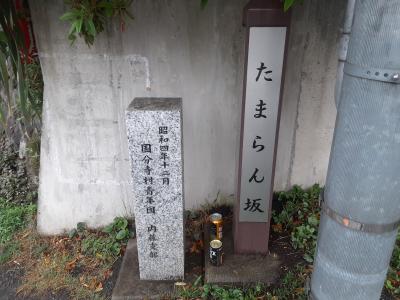 国立駅から向かった場合、左側の歩道脇、坂下の場所に標柱が立ち、「たまらん坂」のユニークな名前の由来が記されています。一橋大学生が「たまらん、たまらん」と言って上ったなど諸説あるようですが、現在の坂は、長さ、傾斜ともそれほどきつくはありません。