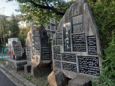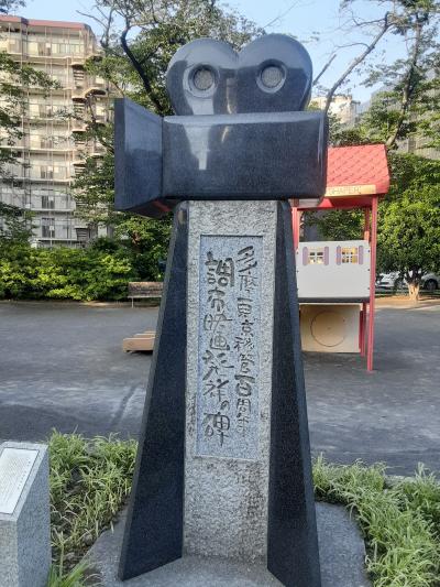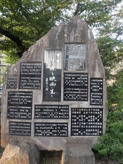 「調布映画発祥の碑」と並び児童遊園の一角に、数多くの映画俳優たちの名を刻んだ碑が3つも並び圧巻。特に右側の碑の中央に記された、故森繁久彌氏による「その生涯を映画に生く」との言葉が印象に残りました。
