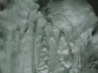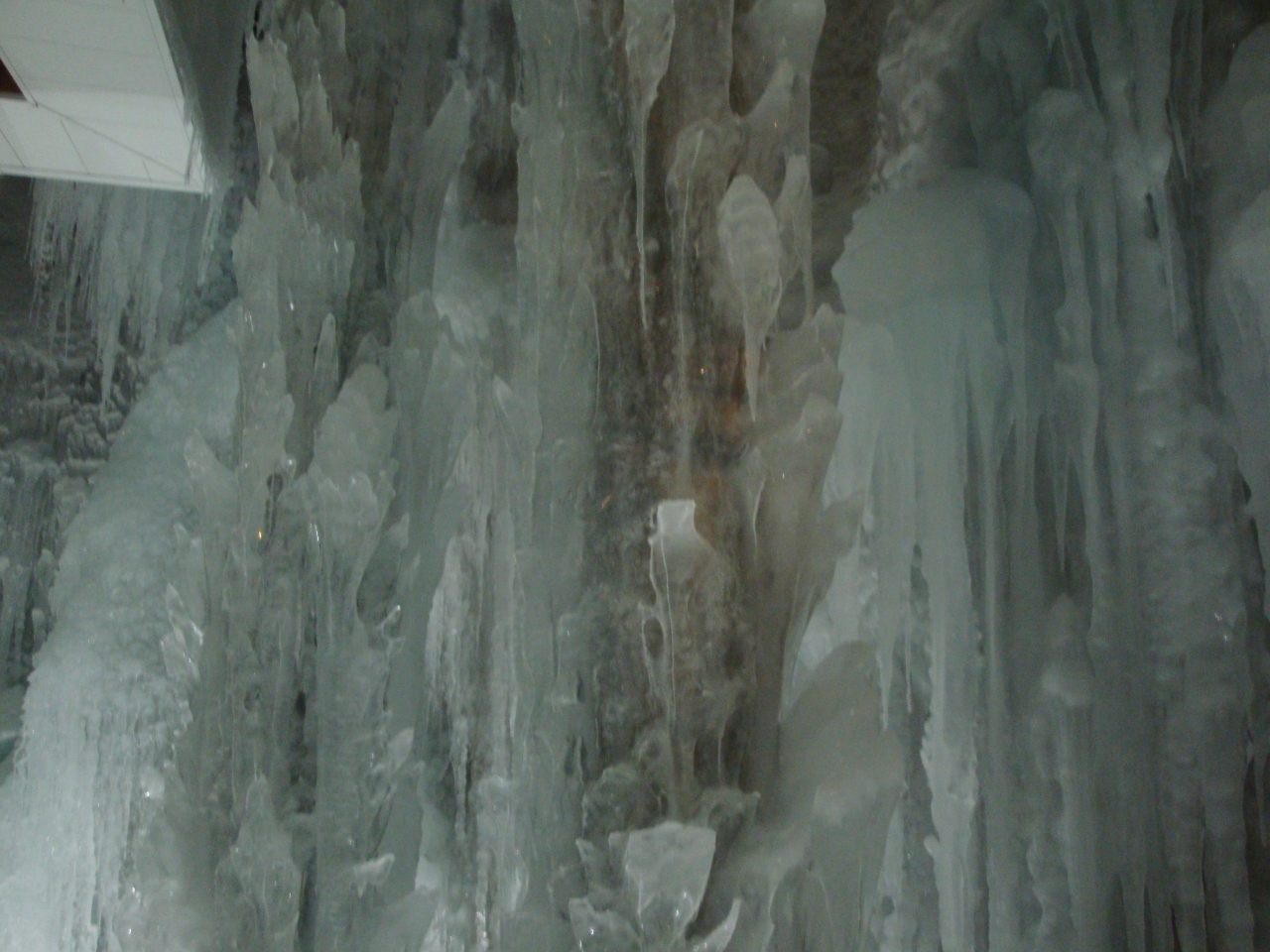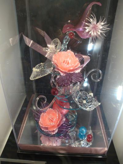 螺旋階段を降りていくと、芸術作品のような氷の造形が窓越しに楽しめます。建物の内部や調度品なども雪をイメージするもので、外の暑さを暫し忘れることができました。
