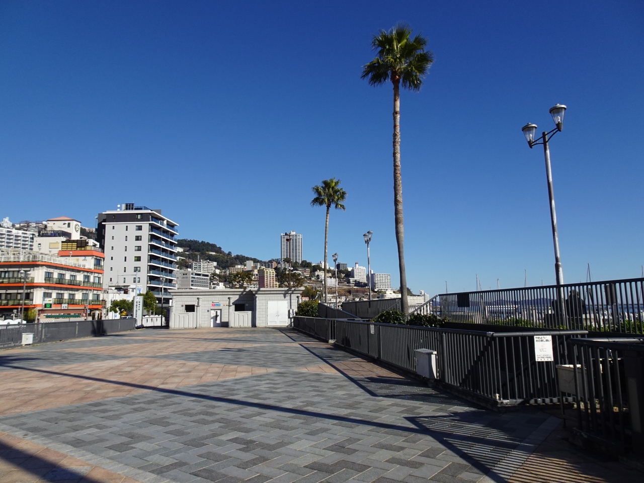 マリーナに停泊しているヨットやクルーザーなどを間近に眺められるほか、海岸近くに迫る熱海の山並みも見えるなど景色を楽しみながら散策が楽しめます。