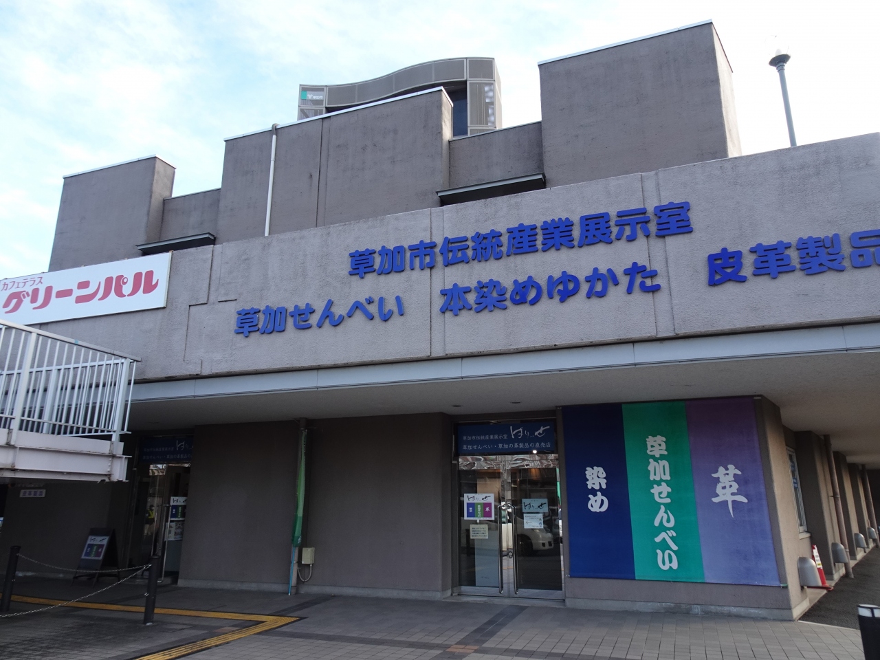 草加市の伝統産業品の「せんべい」「皮革製品」「染めゆかた」の展示施設。各製品の歴史や製造工程などを学ぶことができます。