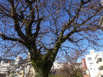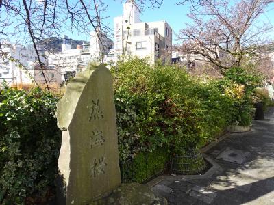 坂道の下、国道135号線と交差する角には、桜の開花状況を示す「あたみ桜基準木」があります。元日の段階では桜はまだでしたが、遊歩道の別の場所では、ちらほらと咲き始めていました。- 旅行時期