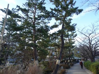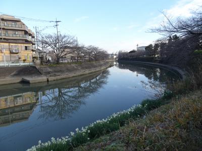 両側には松並木が続き、また路面に敷かれた石畳など江戸期の街道の雰囲気がたっぷり味わえます。訪れたのは1月でしたが、冬でも枯れないマツの葉と、綾瀬川沿いのスイセンの花なども見られ、景色を楽しみながら散策ができます。