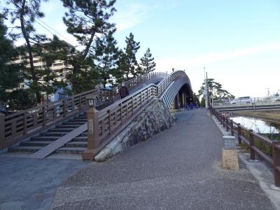 何となく百代橋のサブ的な存在になっている矢立橋ですが、大きさは百代橋の1.5倍あるとのこと。橋に近づくと昇るのを躊躇してしまうほどの勾配・高さです。ただ橋の上からの眺望は良く、百代橋へと真っ直ぐに続く松並木を見下ろすことができます。