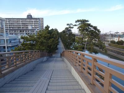 草加松原遊歩道には和風の太鼓形歩道橋が2本架かっています。