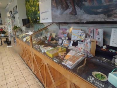 入口から窓口までは奥行きがあり、途中のショーケースに地元の銘菓や特産品などが紹介されています。これらは展示のみで販売されていないのはやや残念。それ以外はごく普通の案内所といった雰囲気でした。