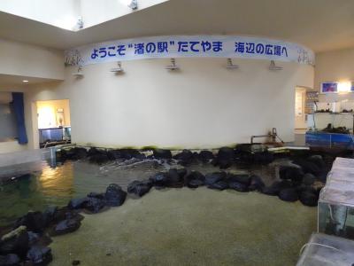 売店「海のマルシェたてやま」には海産物や産直野菜、地元の銘菓、土産類などがバランスよく並んでいました。また売店横の「海辺の広場」では館山湾に生息する魚介類を紹介。小さな水槽が並ぶミニ水族館といった雰囲気です。無料で気軽に楽しめ、ドライブ中の買い物や休憩に立寄るのに適しているように思われます。