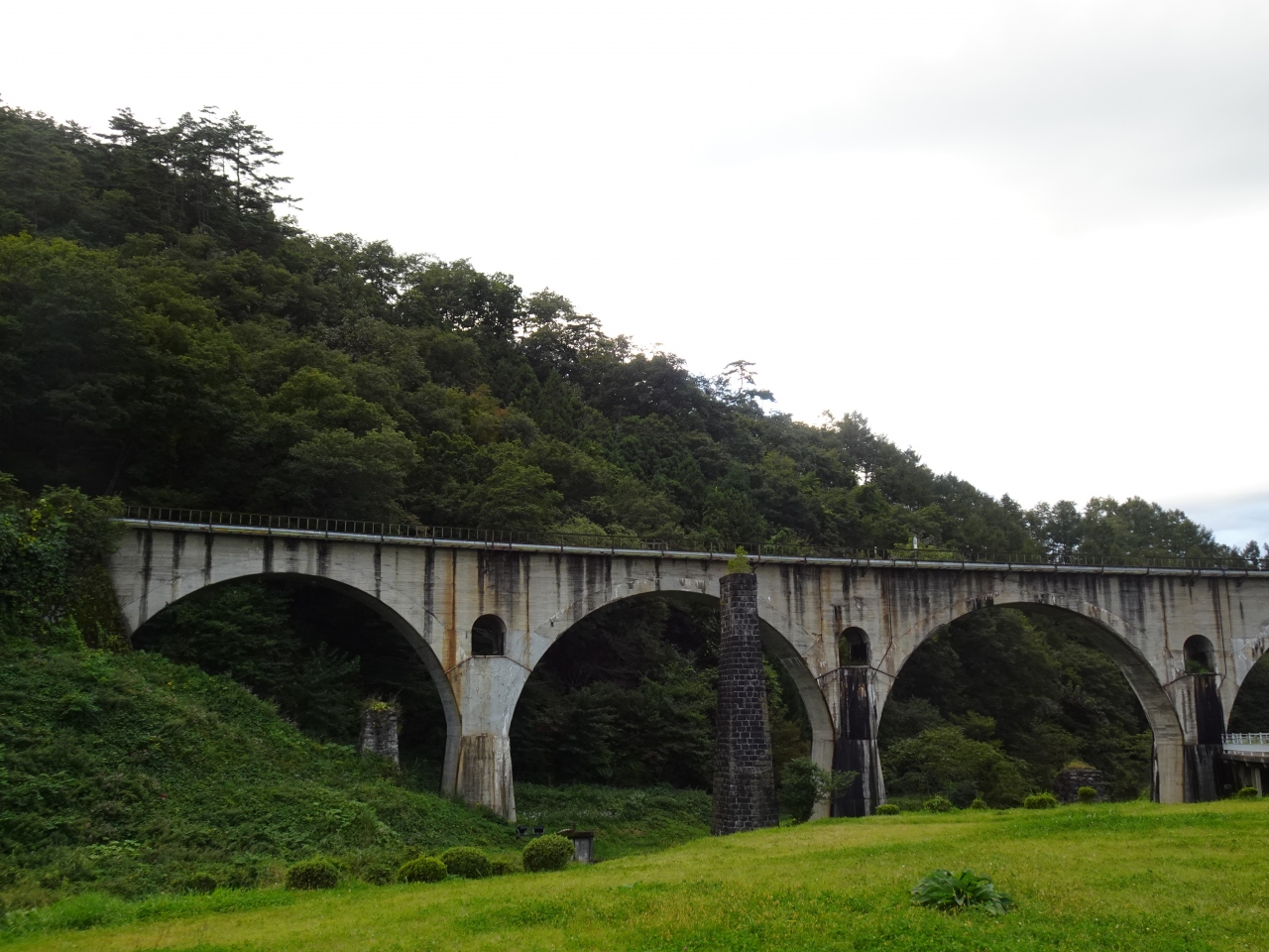 本来であれば「SL銀河」が通過するタイミングに合わせれば絵になるのでしょうが、1943年に造られた5連アーチを眺めるだけでも味わい深さを感じます。橋の周辺は公園が整備され、安心して見学が可能。