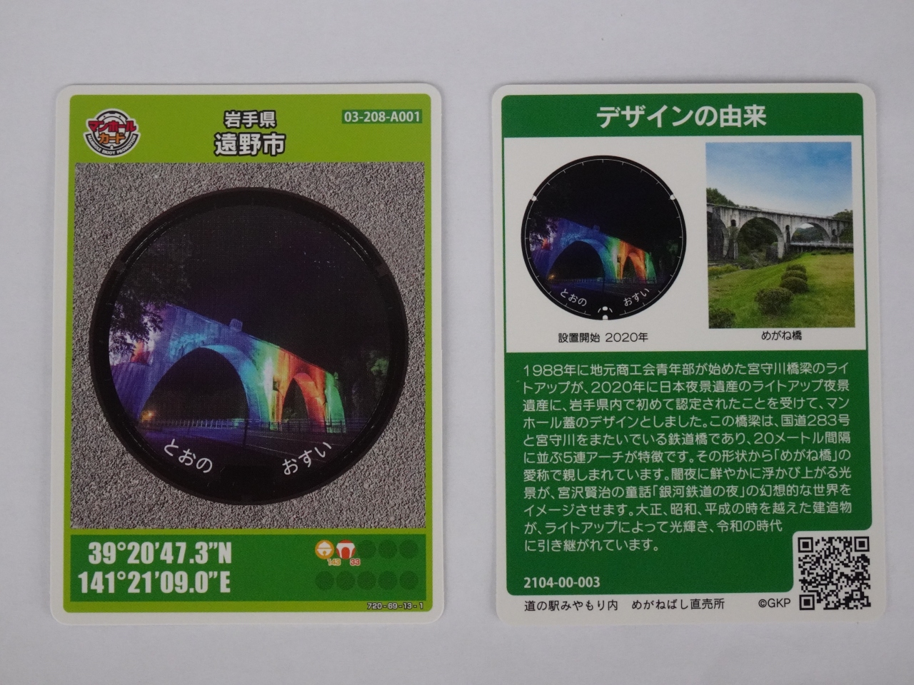 車は隣接する道の駅「みやもり」に停めれば便利です。道の駅の売店ではライトアップした宮守川橋梁がデザインされたマンホールカードを頂けます。- 旅行時期
