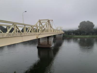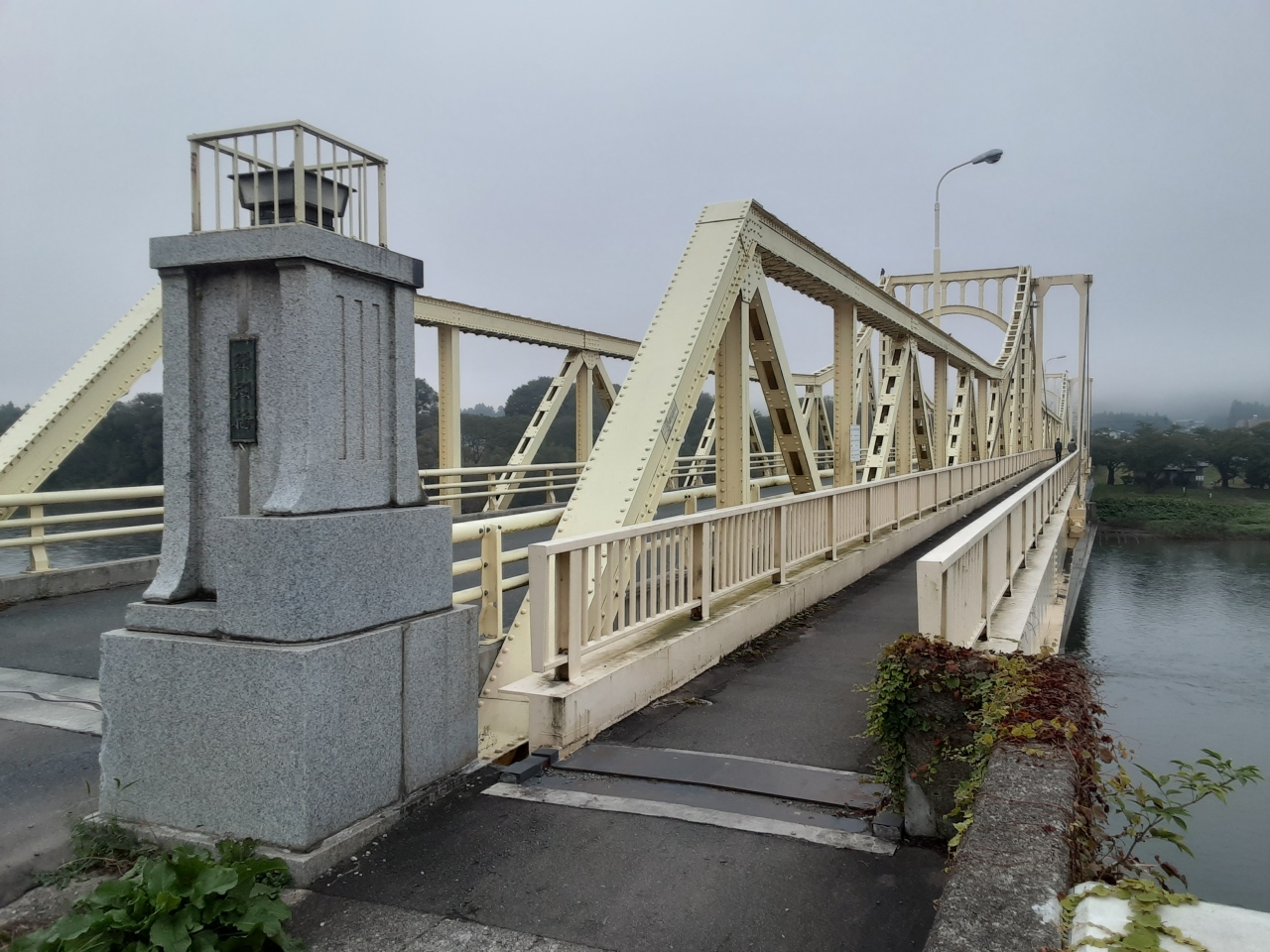 北上川に架かる長さ253メートル強のゲルバートラス橋。北上駅から市内の名所の一つ展勝地へ向かうには、この橋を渡るのが最短のルートとなります。