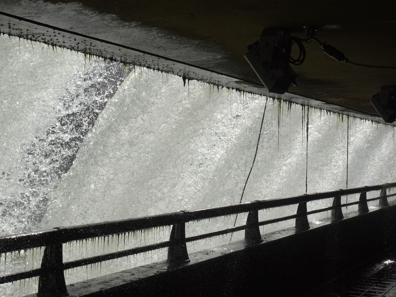 そしてこのダムの最大の特徴は、滝の裏側からの見学が可能なこと。ダム内部の通廊は時期によって開放、そのタイミングに訪れれば、なかなか目にできない光景を楽しめます。通廊内は水流によるものすごい轟音のため近くの人の話声などは聴き取れないほど。