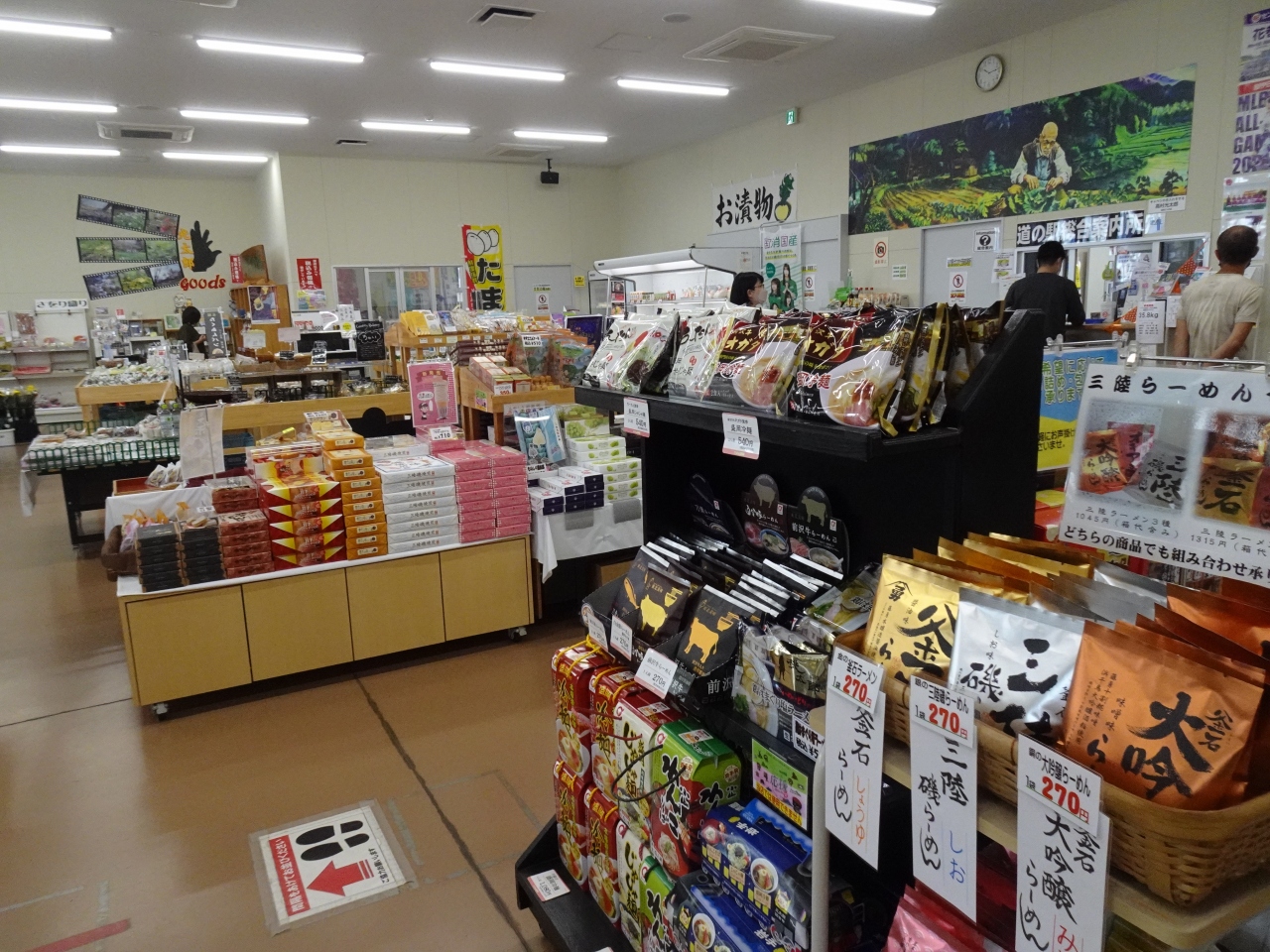 規模としては中規模。売店もそれほど大きくありませんが、花巻東高等学校の応援グッズコーナーが一角にあり、大谷選手の新聞号外が配布されていました。また名物の「たくあんパン」が売られていたり、食堂が焼肉店であったりと個性的です。