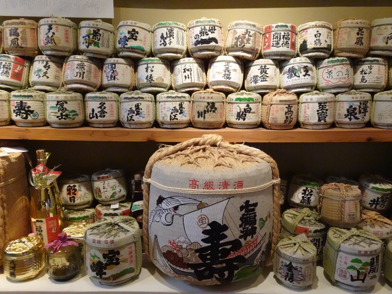 売店は銘酒のほか、お酒を使った菓子などが多く販売されているのが特徴。全体的に土産類の種類は多いとは感じられませんが、通路の幅が十分確保され商品が見やすいのは良いと思います。