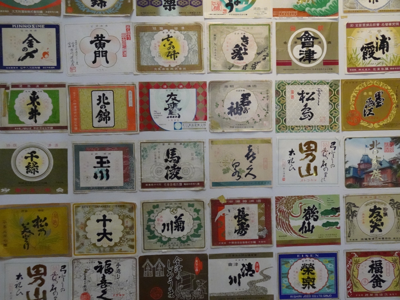 さらに各地の日本酒のラベルが並び、そのデザインの多様さも楽しめます。
