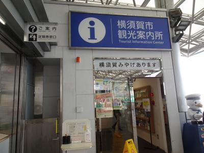 京急の横須賀中央駅改札から出て左側にある観光案内所。海軍カレーを持ったカモメのキャラクター「スカレー」が目印です。