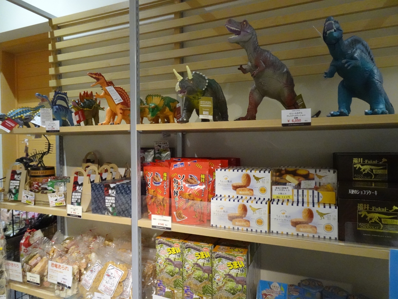 - 恐竜グッズのほか銘菓等土産品が揃う