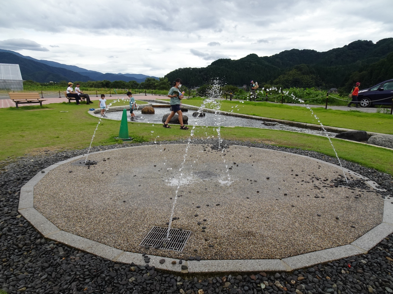 道の駅の裏手には噴水や水場、さらには恐竜のオブジェ下の滑り台などがある広場も設けられ、お子さん連れで楽しめるスポットです。- 旅行時期