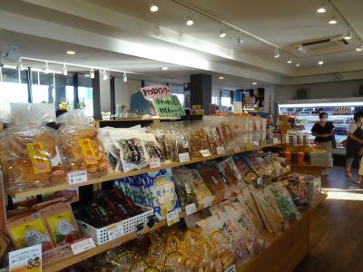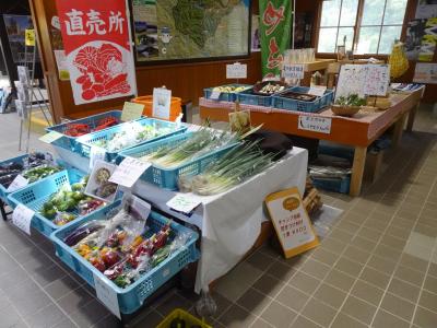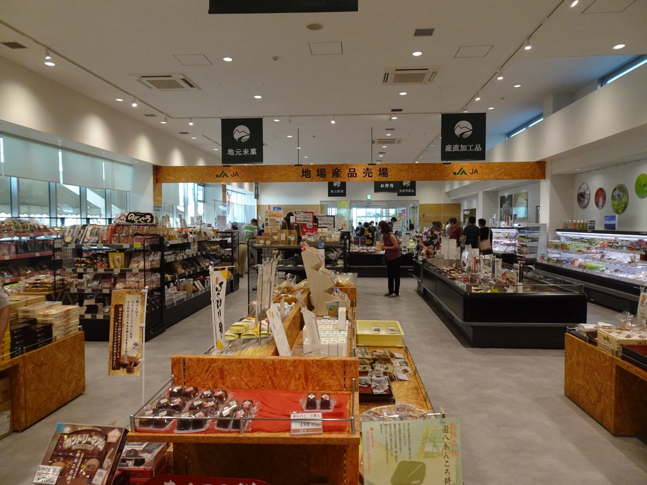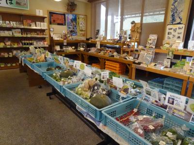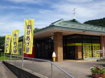 ログハウス風の情報棟には小規模ながら直売所があり、地元産の野菜や果物が格安で販売。また別棟の「あげあげ屋」にも土産物が並ぶほか、名物の油揚げが食べられる食事処など一通りの施設が揃っています。