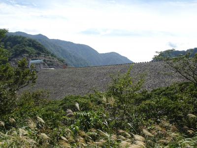 トンネル北側にある駐車スポットから、巨大なロックフィルダムの堤体を何とか見ることはできます。