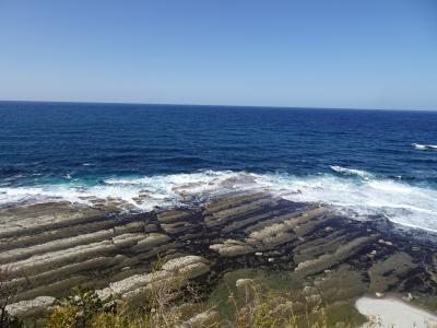 周囲は千畳敷に覆われ日本海の絶景スポット。訪れたのは4月中旬でしたが、山の上には桜の花も見られ風景を楽しむことができました。- 旅行時期
