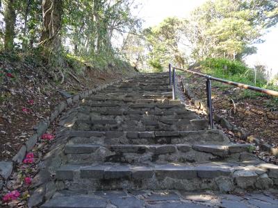 車を停められる道の駅「狼煙」からは徒歩で10分ほど。やや勾配のきつい坂道と階段を上る必要があり、高台の下からは灯台の姿は見えません。