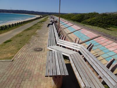 志賀町の増穂浦海岸を見下ろす長さ460メートル、作られてから暫くはギネスブックにも登録されていたという長大なベンチ。