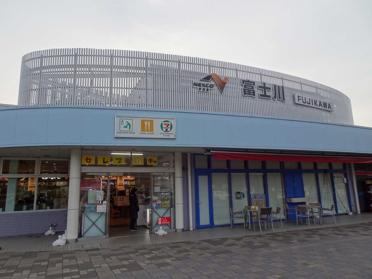 今回は初めて下り線を利用。観覧車があったり道の駅富士川楽座を併設する上り線は施設の充実度が高め。一方早朝の下り線では、土産店の開店前で物販はセブンイレブンのみオープン。フードコートの店舗も少なく、設備面ではやや大きめのパーキングエリア並みといった印象。新東名下り線の駿河湾沼津SAや静岡SAと比べ物足りなさを感じました。