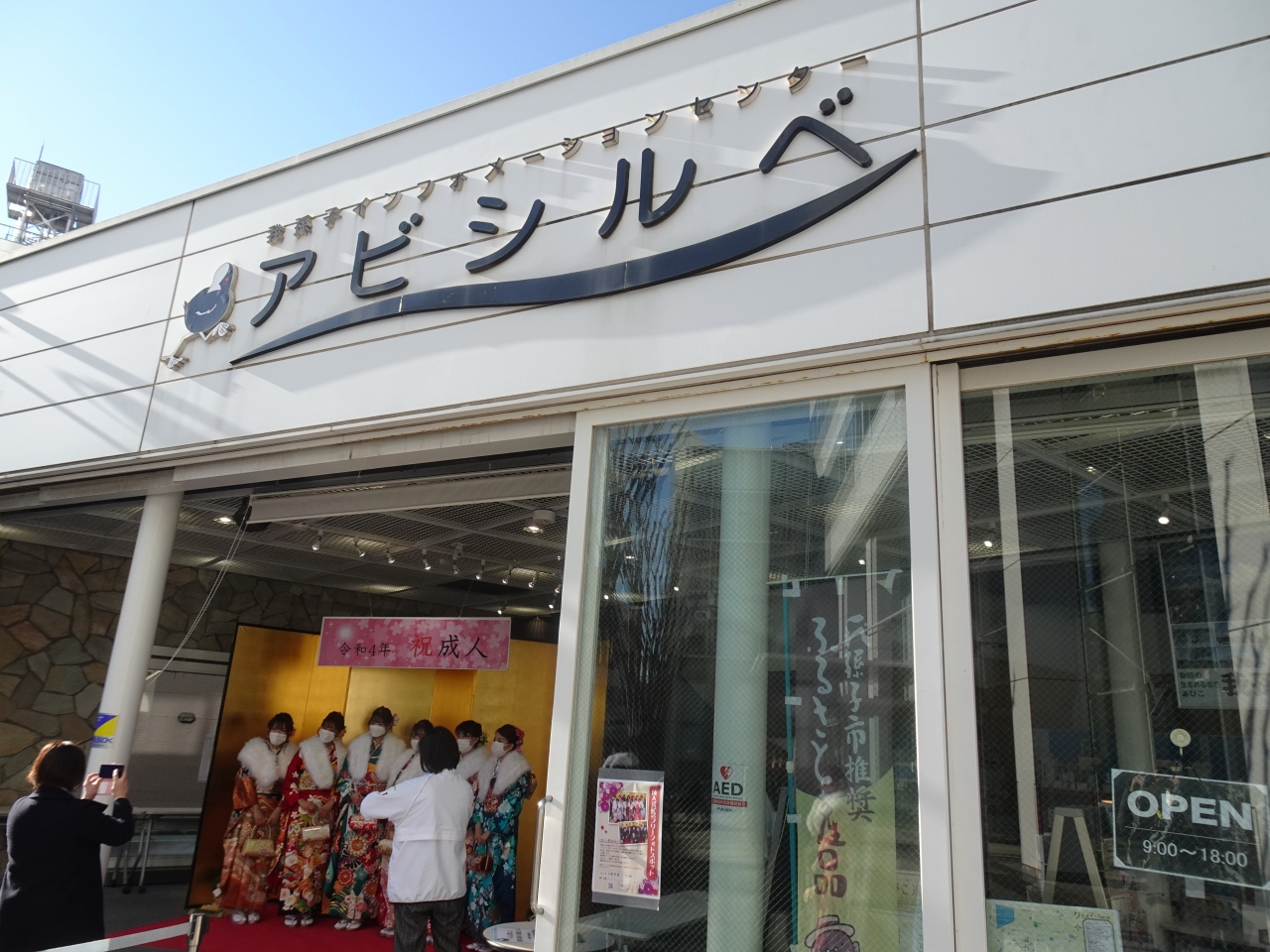 訪れた日は近くのホールで成人のつどいが行われていたようで、晴着等で着飾った若者たちが集結。アビシルベ内のイベントスペースでグループごと順番に記念撮影のサービスを行う等賑わっていました。単なる観光案内所ではなく地域との密着ぶりが窺えます。