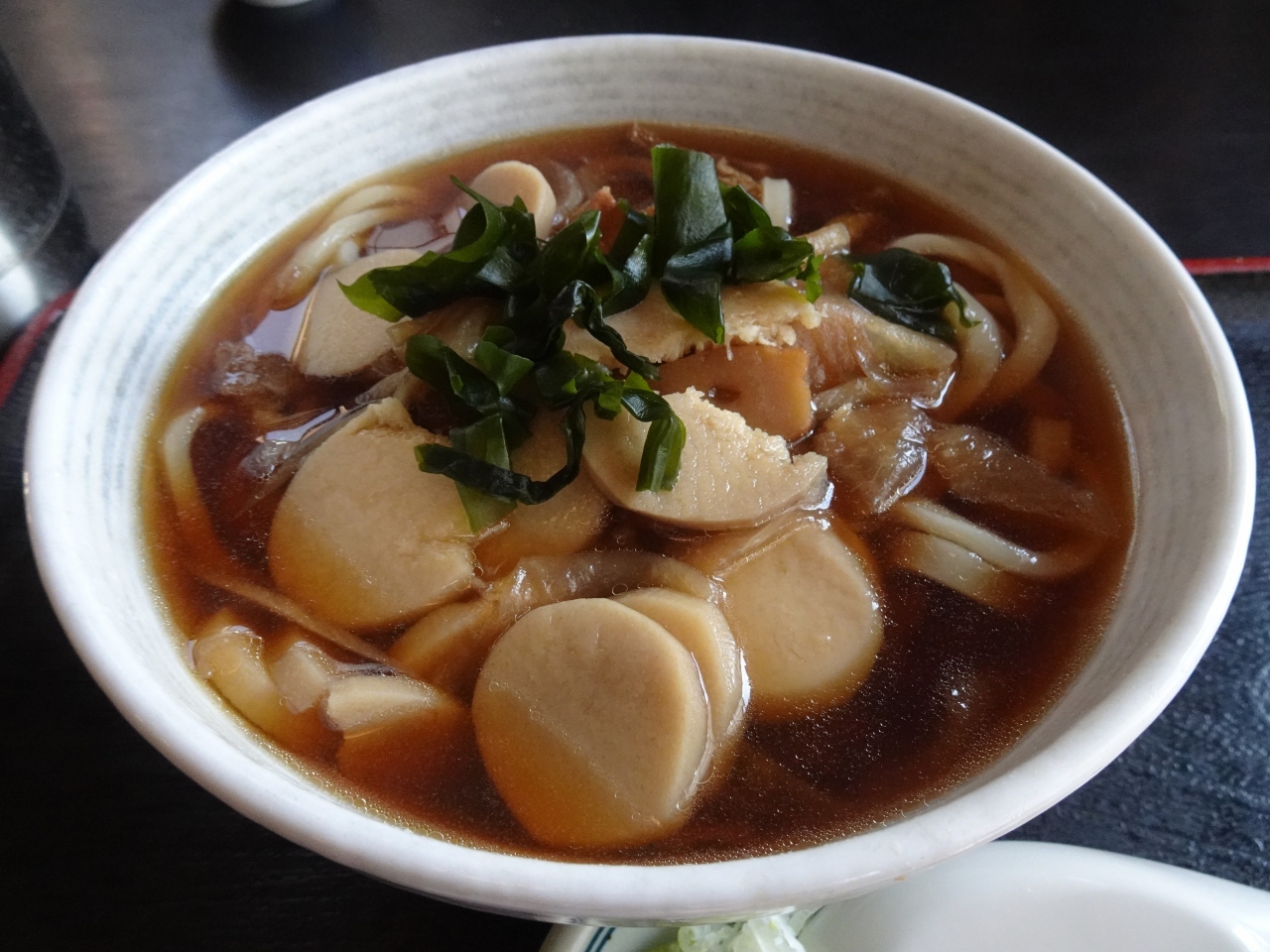 メニューの中心のそばやうどんは手打ちで、店外から蕎麦を打つ風景を見ることができます。道の駅がある加須市はうどんの街としても名高いことから、けんちんうどんをオーダー。麺はコシがあり食べ応え十分、具だくさんで体も温まりました。