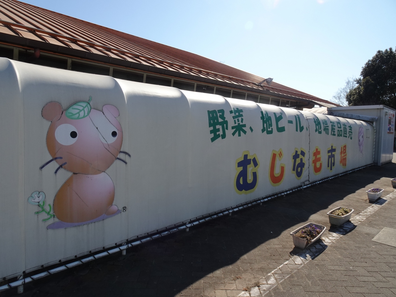 広場や遊具など公園の機能も担っていますが、道路沿いの正面には「むじなも市場」という直売所のほか食事処もあって物販がメインのような印象。