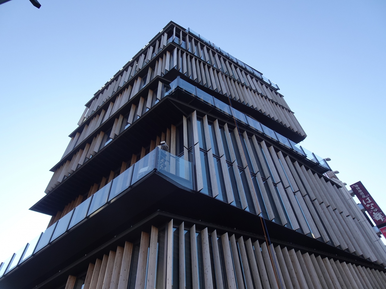 木造の家屋を垂直に組み合わせたように見える建物は隈研吾氏の設計。どこかのビール会社のビルとは違って、浅草の街並みによく馴染んでいます。- 旅行時期