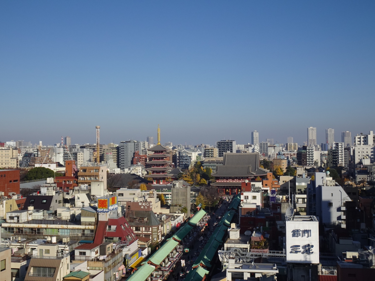 1から2階が観光案内所、中層階に会議紙などの公共施設、7階が展示室、そして最上階が展望テラスです。テラスには安全柵があってやや見づらいものの、浅草を象徴する浅草寺と仲見世通りが良い角度で望めます。