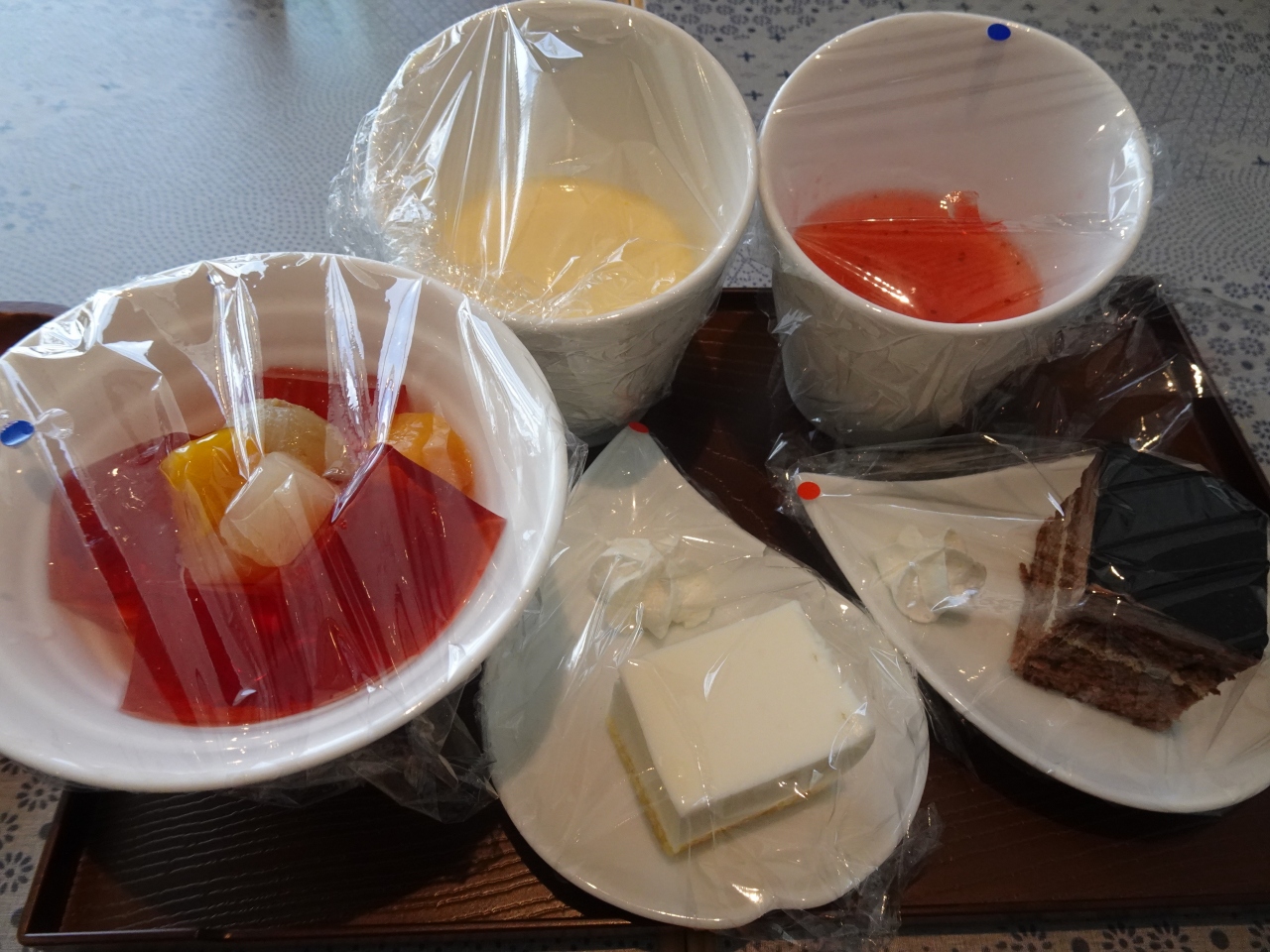 炭水化物の組み合わせですが、うどんもライスも量は軽め(ライスはお替り可)。おやつバーからは総菜類の小鉢のほか、色々なデザート類が揃っている点は工夫されています。