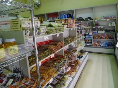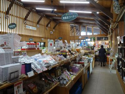 1階が観光地によくある雰囲気の売店と食堂。広さはまずまずでお土産の数も揃っています。
