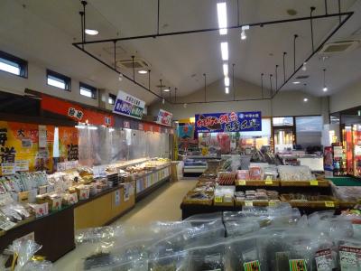 夕暮れ時だったため訪れる人は少なく寂しげな雰囲気が漂っていましたが、海産物を始め土産物の種類は揃っていました。特に海苔製品は目立ち、青のりコロッケや青のりソフトクリームなどを食べることもできます。