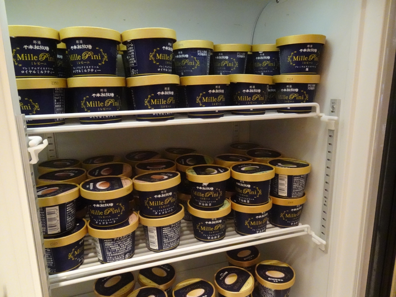 ソフトクリームのスタンドや牧場系のアイスクリームの販売も。店舗の外にはソファがあり、屋外のアリーナにも近いのでその場で食べることが可能。
