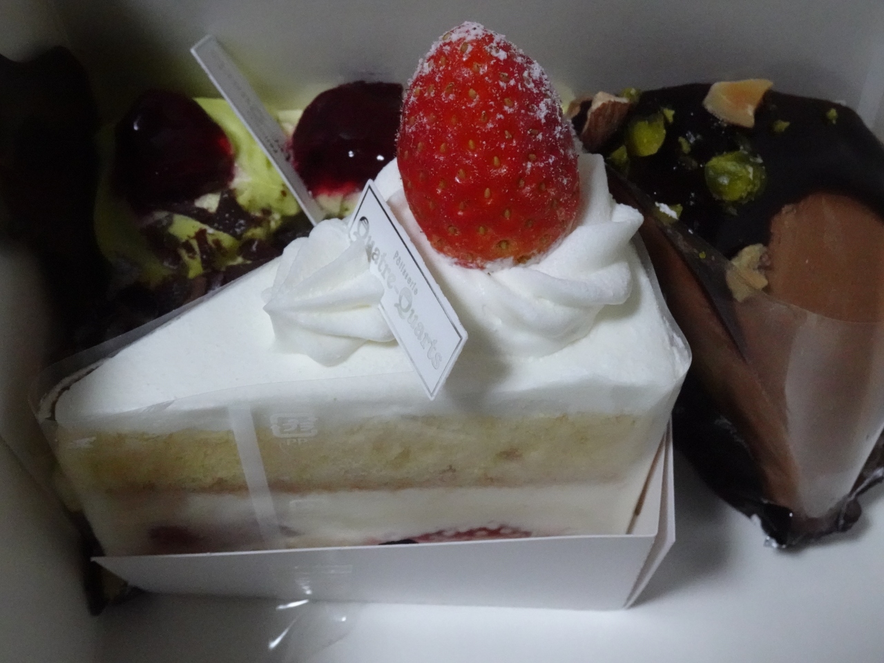 今回武蔵小金井駅前店でケーキを買って持ち帰り。ケーキの価格帯は500円前後が中心。サイズは小さめで、甘すぎず、食べた後はもう一つ行けそうとも思うような程よい満足感です。