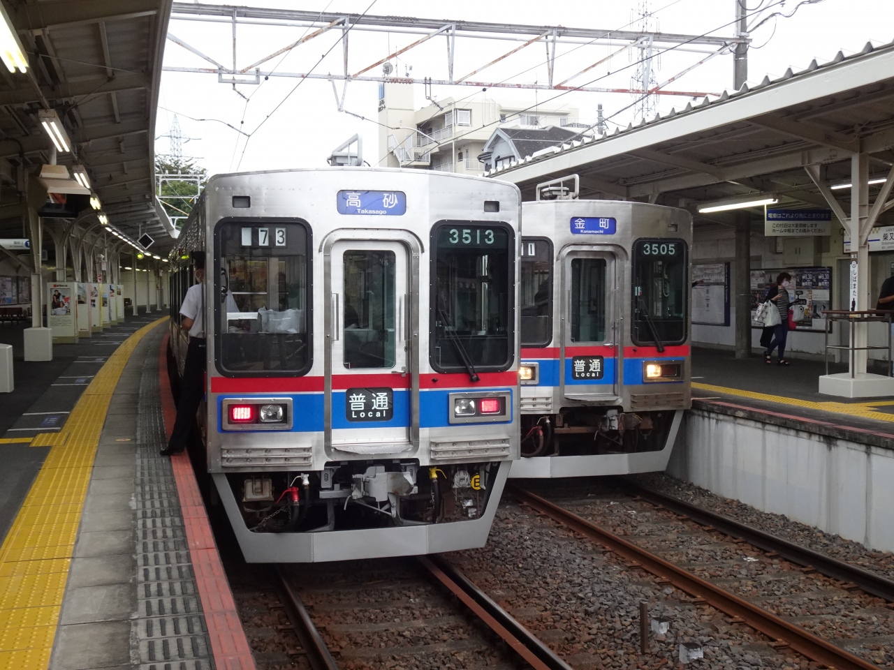 地平ホームの柴又駅と京成金町駅は階段が少なくスロープもあって究極のバリアフリー構造。一方京成高砂駅は高架となり、寅さんシリーズの映画で見られるような上野方面直通列車は現在運行されていません。