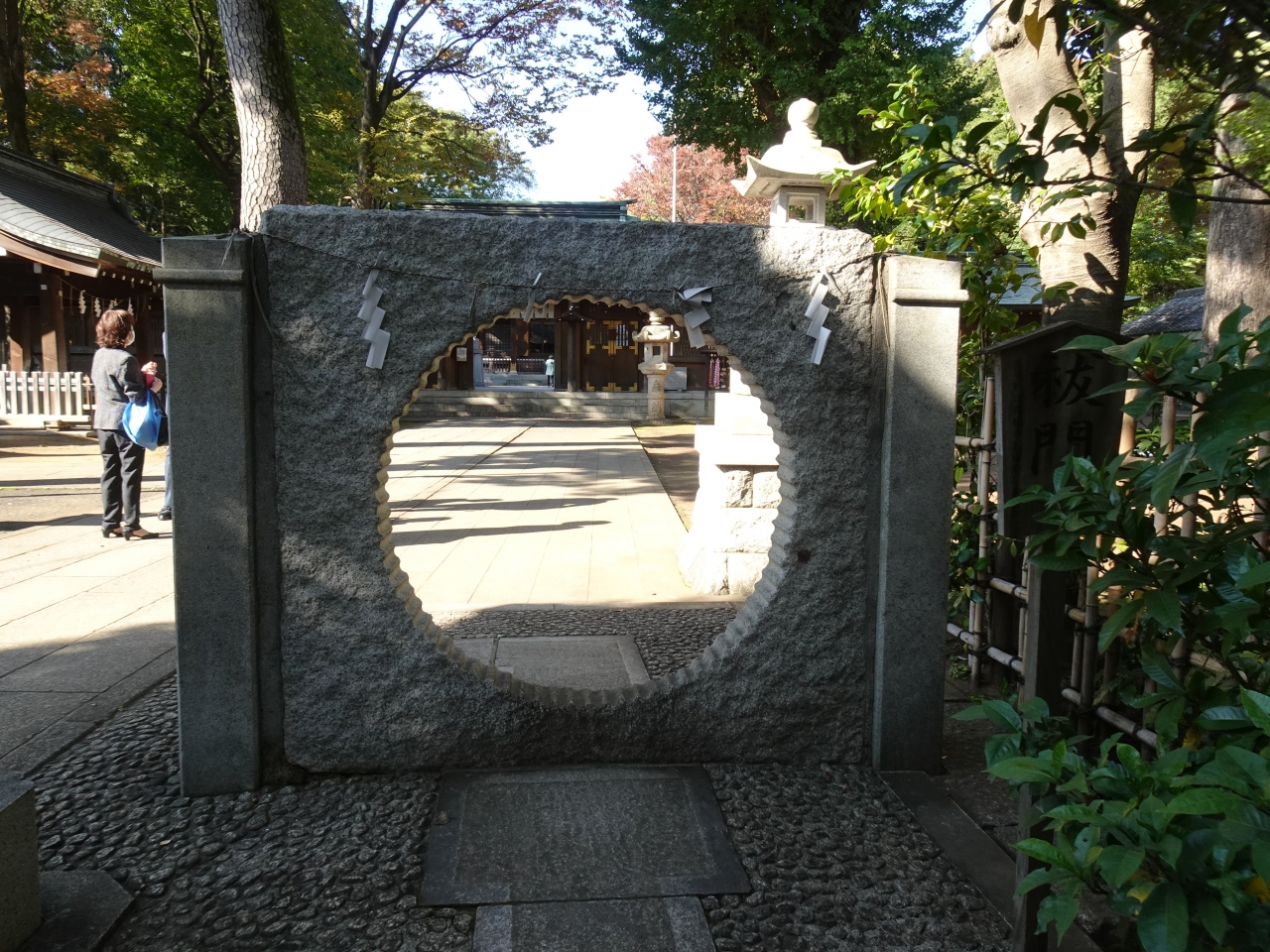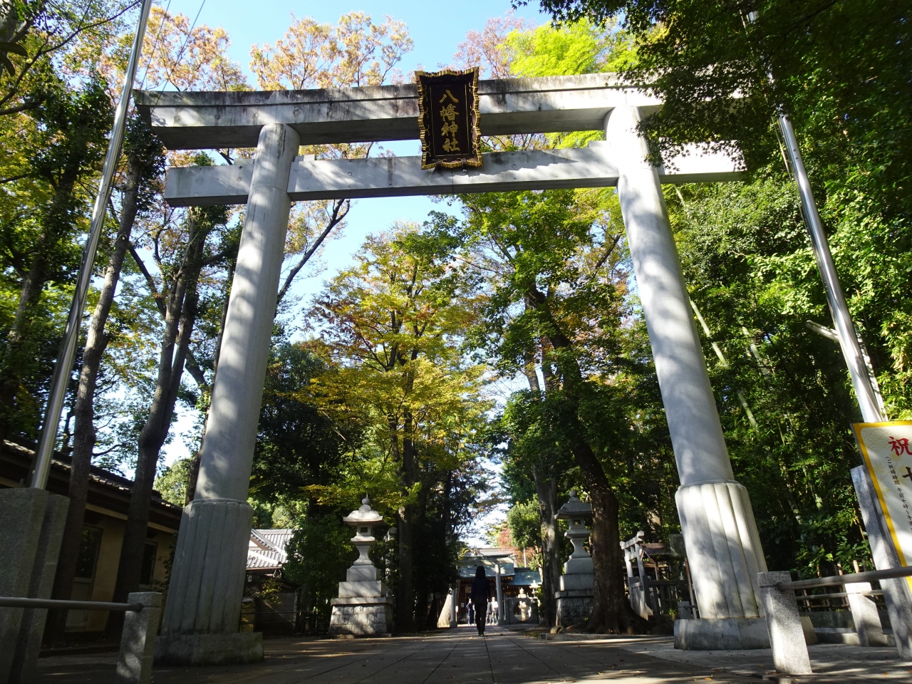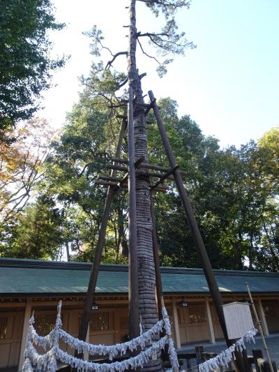 境内で眼を惹くのは真っ直ぐに聳える「道灌槇」の木。脇の解説板によれば文明9年、江古田の合戦の際に太田道灌がこちらで軍神際を行い槇樹一株を献植したのが由来とのこと。