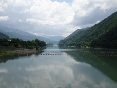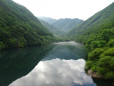 堤高は40メートルほどのため下流側の眺めは迫力という点で物足りなさを感じます。見どころはむしろ上流側のダム湖。訪れた日は風も弱く、湖面に雲が映り込み、山並みを背景とするよこかわ湖は神秘的に見えました。