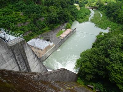 ダムの形式は右岸部が重力式コンクリート、左岸部がロックフィルの複合。コンバインダムと言われるもので、外観上は一粒で二度おいしい感を楽しめます。