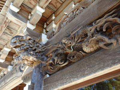 山門の上部は竜の彫刻に囲まれ、また手水舎にも竜の彫塑が見られるなど境内を子細に見て行くと色々楽しめる要素あり。