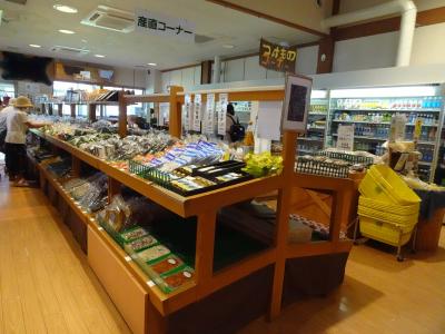 日帰り温泉が併設され、温泉内のレストランのほか、そば店や軽食コーナーなど飲食店は4か店あります。土産店や地元野菜などが並ぶ産直コーナーの品揃えも豊富で、平日ながら賑わっていました。