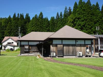 カードの配布場所は下流側3キロほどの場所にある「グリーンビレッジ かやぶきの館」。