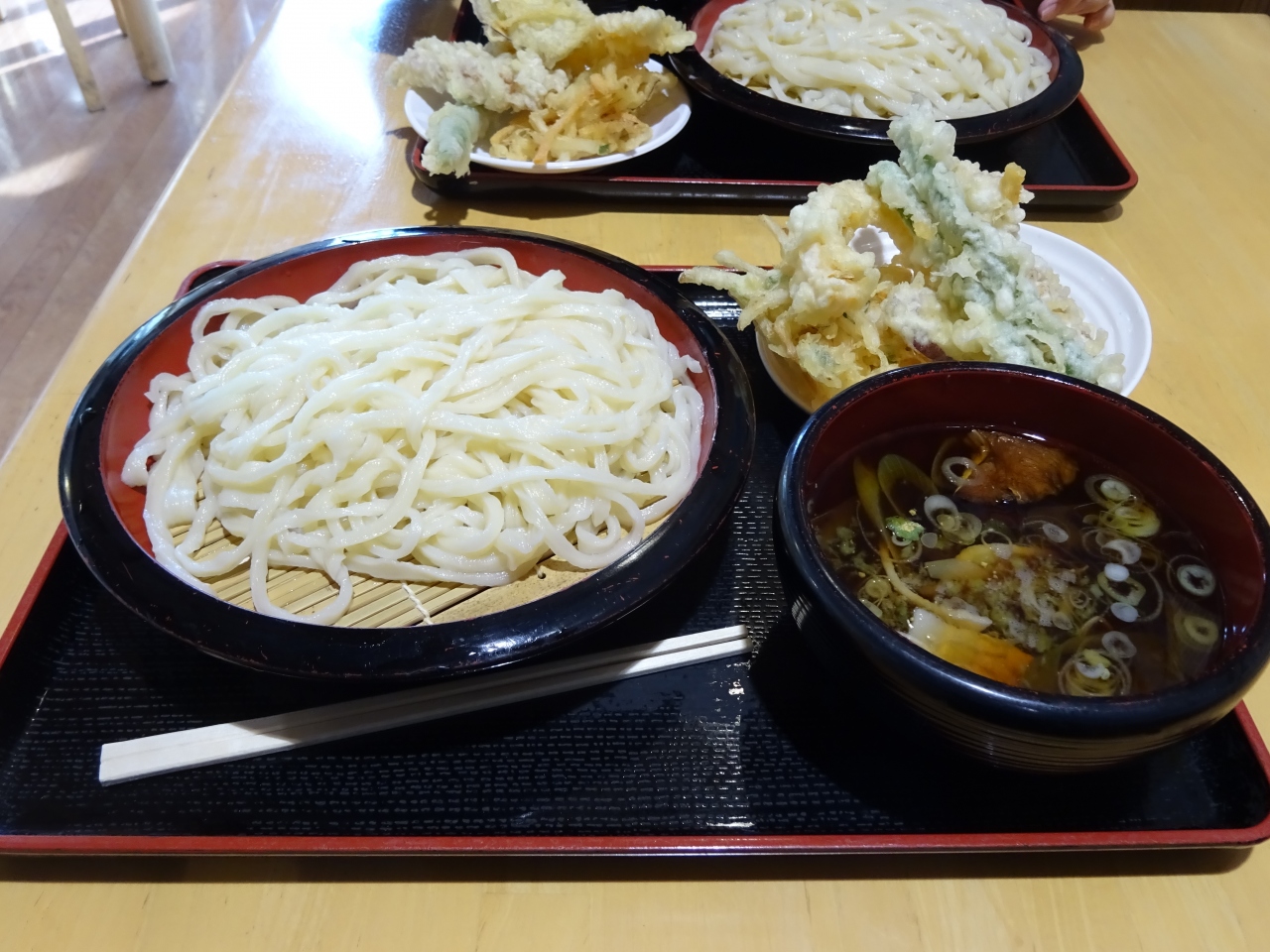 全体的にコンパクトながら農産物直売所に物産館と必要なものは揃っています。物産館内の食事は、うどん、ラーメン、定食類と三つの店が並び、このうち多くの人が食べていたのがうどんのお店。手打ちの天ぷらうどんは食べ応えがありリーズナブルでした。