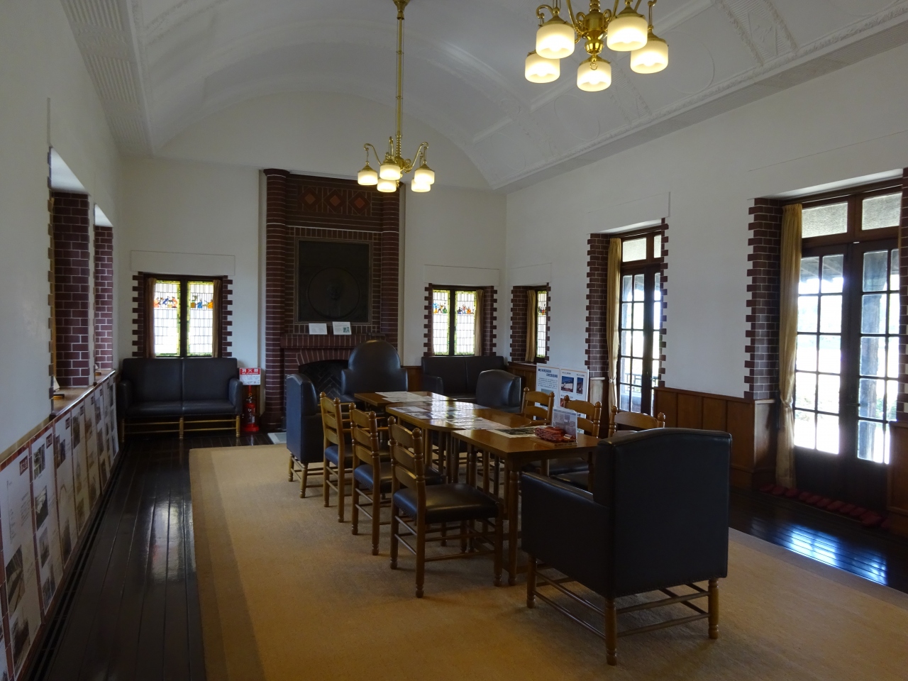 「誠之堂」は渋沢栄一が初代の頭取を務めた第一銀行の行員が出資し、栄一の喜寿の記念して建築されたもの。壁には日本煉瓦製造の煉瓦が使用され、また窓のステンドグラスは中国風のデザインが描かれ細かな部分に亘り見どころが多くあります。