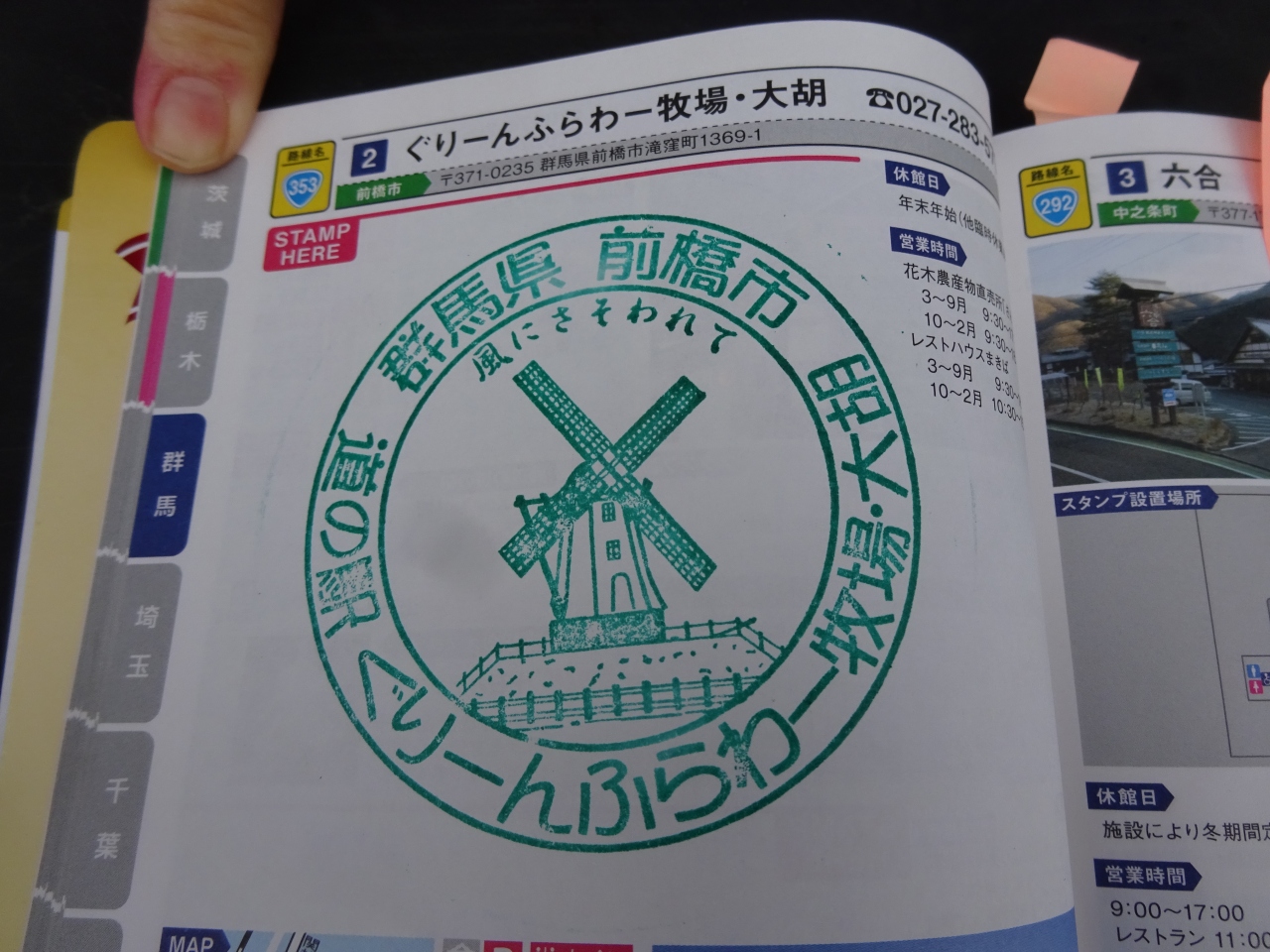 前橋市にある国道353号線沿いの道の駅。シンボルのオランダ型風車は道の駅のスタンプの絵柄にもなっています(羽は固定されていましたが)。