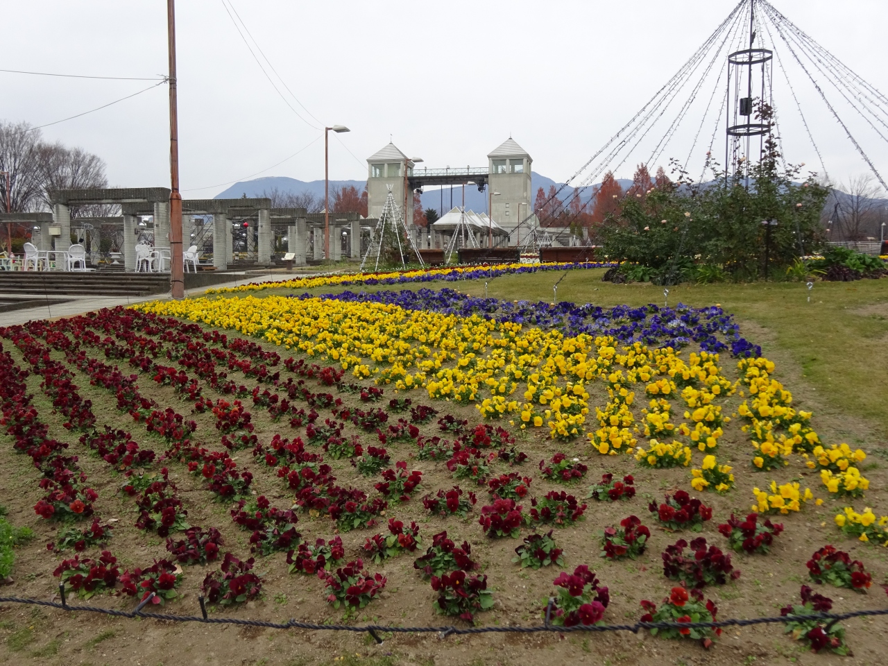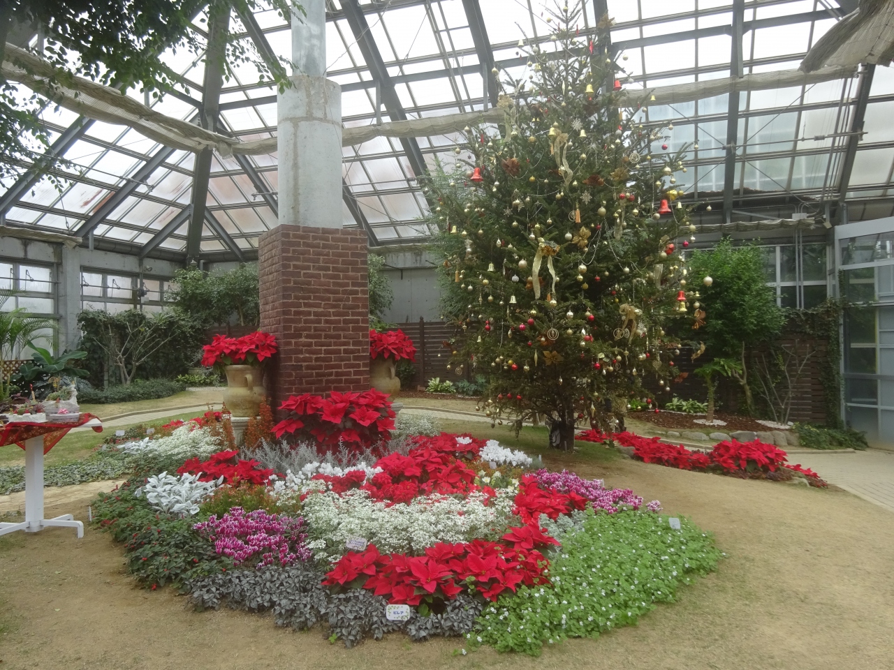 この時期に見られるパンジーやビオラは手入れが十分に行われているようで気持ち良いです。またイベント温室ではクリスマス仕様に花や木が彩られ鮮やかでした。