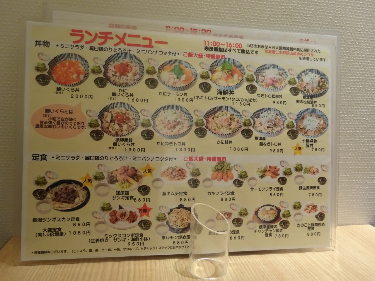 定食類は1000円前後が中心